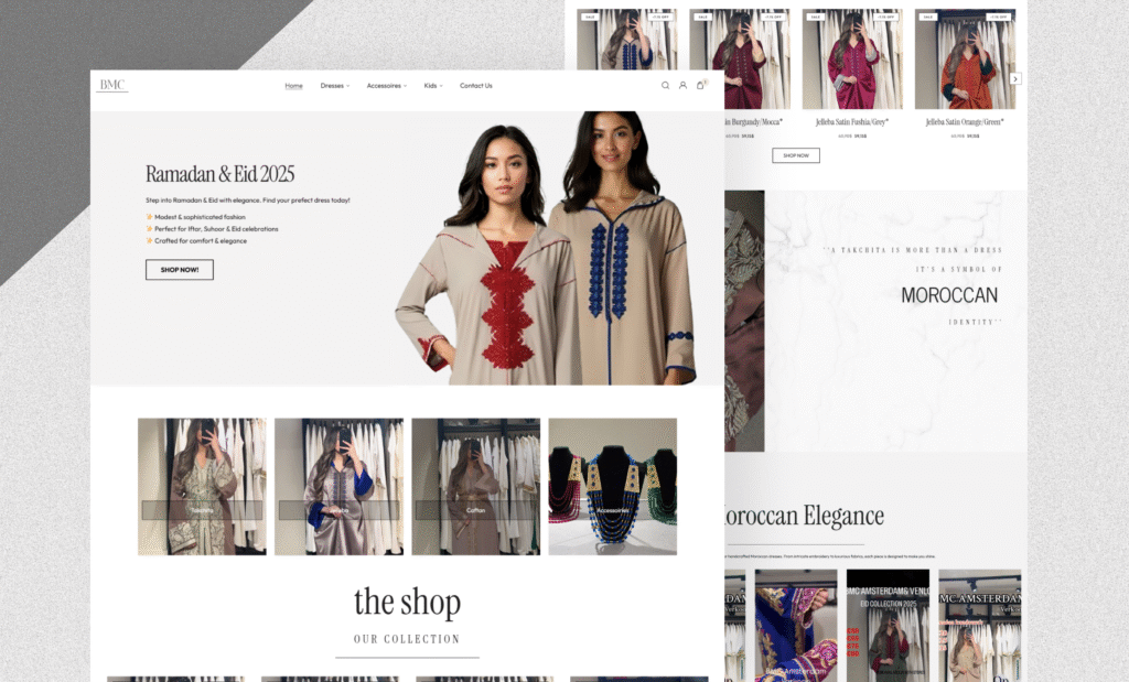 We collaborated with BMC to create an eCommerce platform that highlights the elegance of Moroccan fashion. The aim was to build a visually immersive website that balances tradition with a clean, modern design. From concept in Figma to development in WordPress, the site was crafted to reflect cultural authenticity, provide intuitive navigation, and perform flawlessly across all devices.