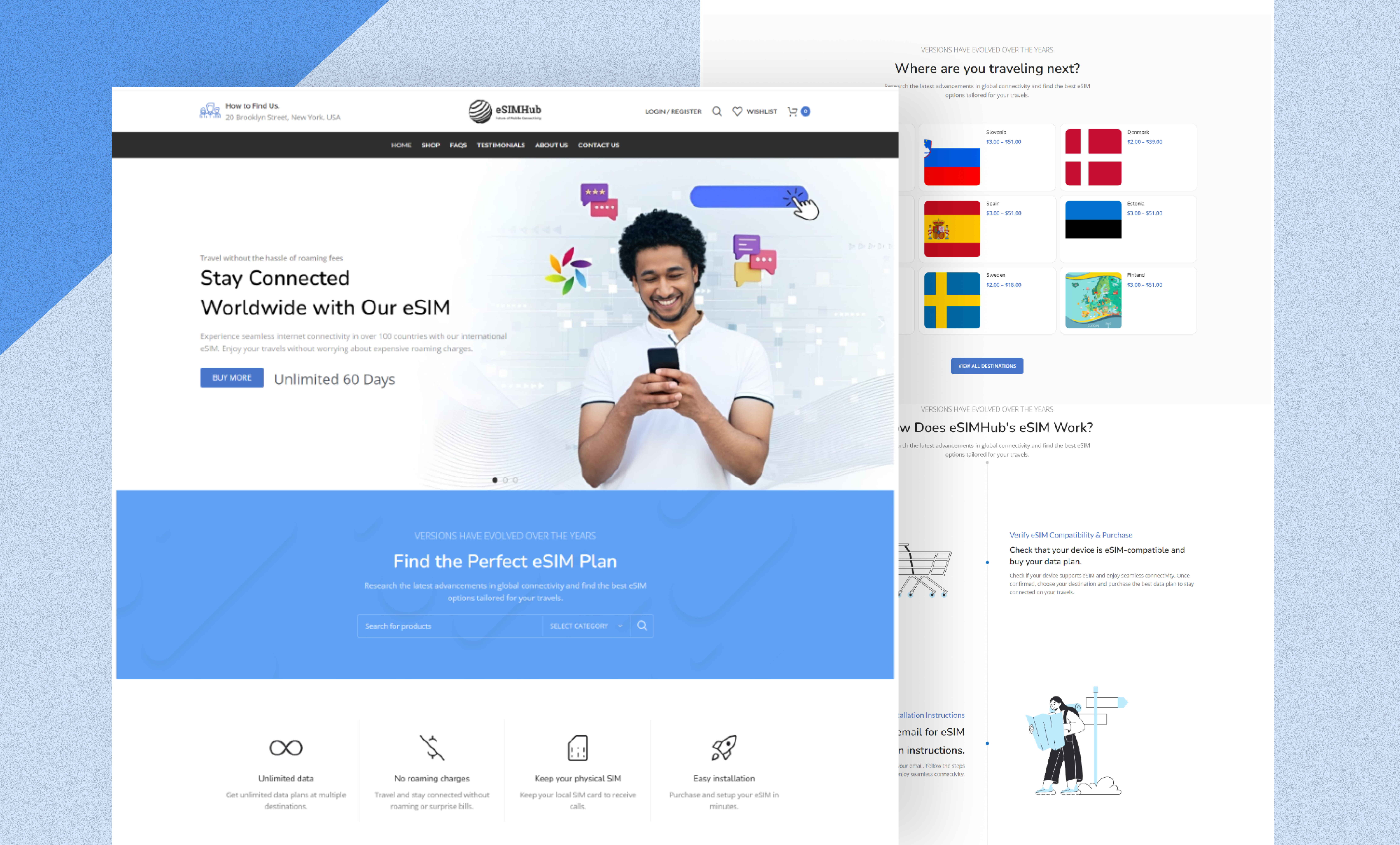 We collaborated with Erkan Aydogan to design a user-centric website that simplifies the eSIM buying and activation process. From Figma design to WordPress development, the goal was to deliver speed, clarity, and mobile-first performance while presenting eSIM technology in an accessible way.