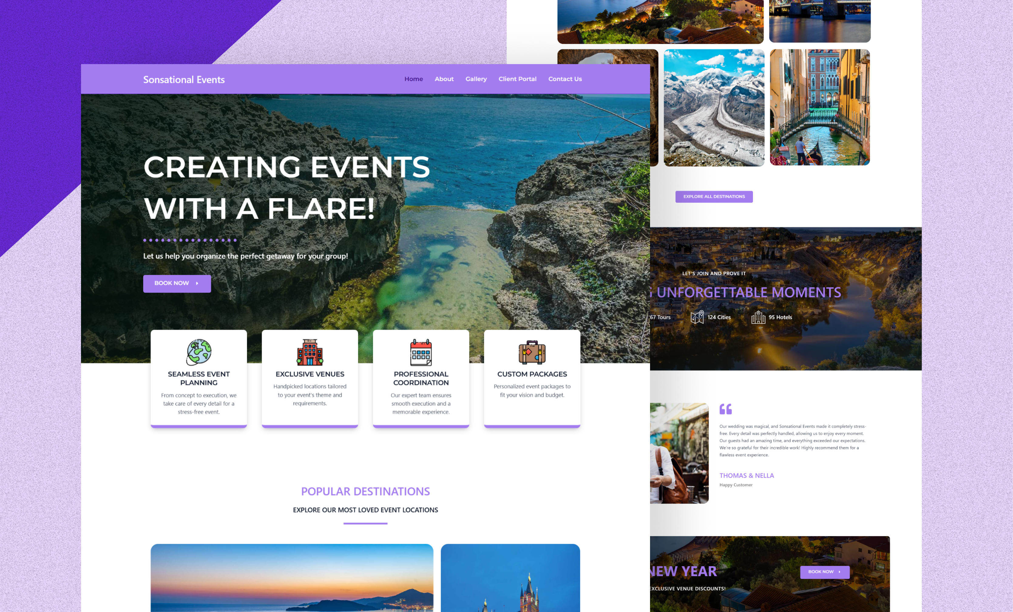 A visually engaging and interactive website designed for an event planning business — combining cinematic visuals, smooth navigation, and powerful features like a dynamic calendar and booking system to enhance user engagement and event management.