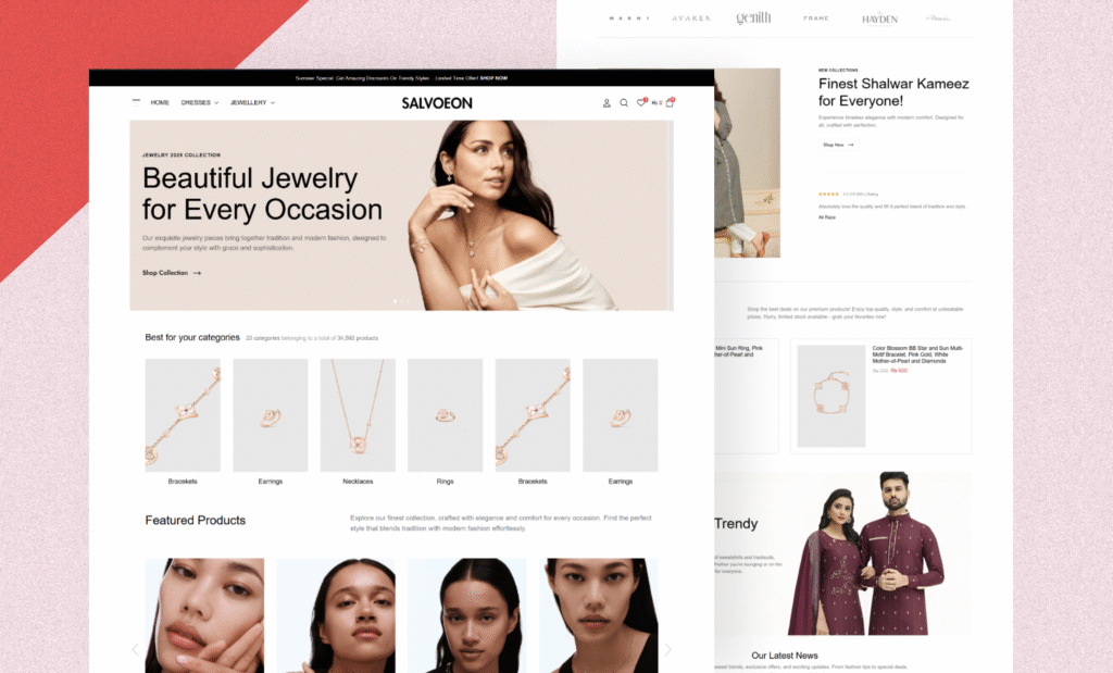We partnered with Salman to design a stylish and high-performing eCommerce website for his fashion and jewelry brand. The goal was to create a luxurious online presence that reflects the elegance of the products while ensuring a seamless user experience. From Figma design to WordPress development, every detail was crafted to enhance brand appeal, boost engagement, and drive conversions across all devices.